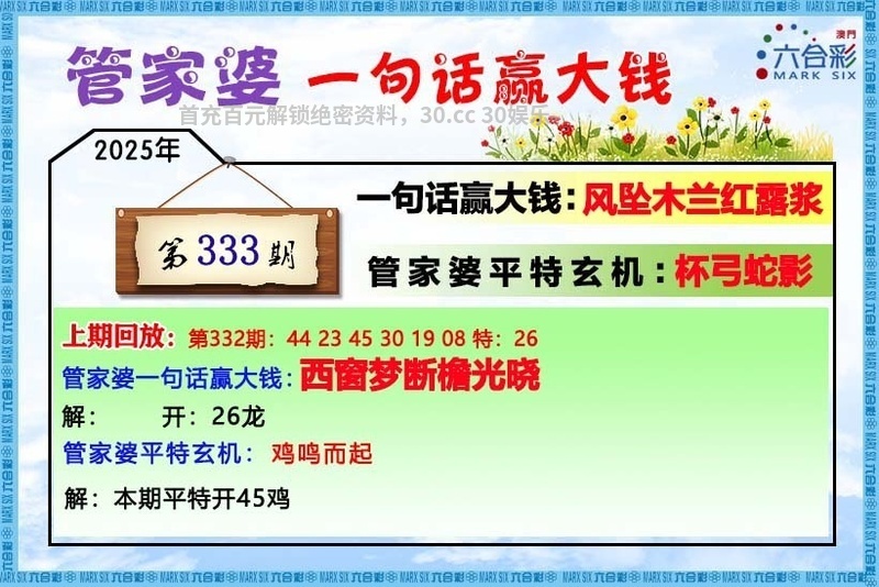 333期:管家婆一句话:【风坠木兰红露浆】 |