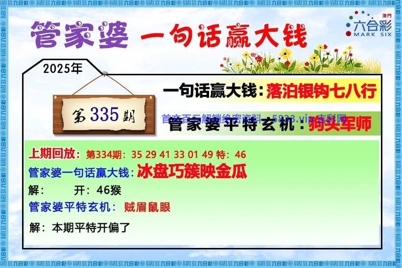 335期:管家婆一句话:【落泊银钩七八行】 |
